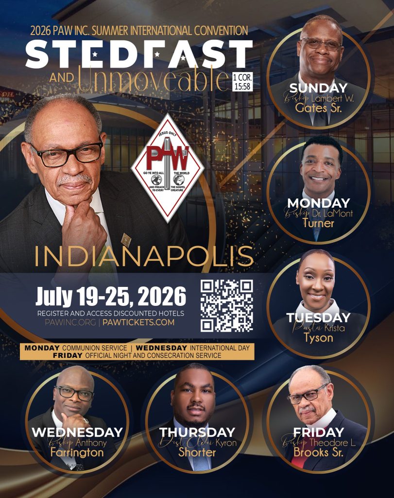 Our Diocesan Bishop Dr. Anthony Farrington from the 39th Episcopal District of The Bahamas and Turks & Caicos Islands Council, moderated at The Pentecostal Assemblies of the World, Inc., International Convention on Wednesday night July 30th, 2025 which was themed “International Day”.